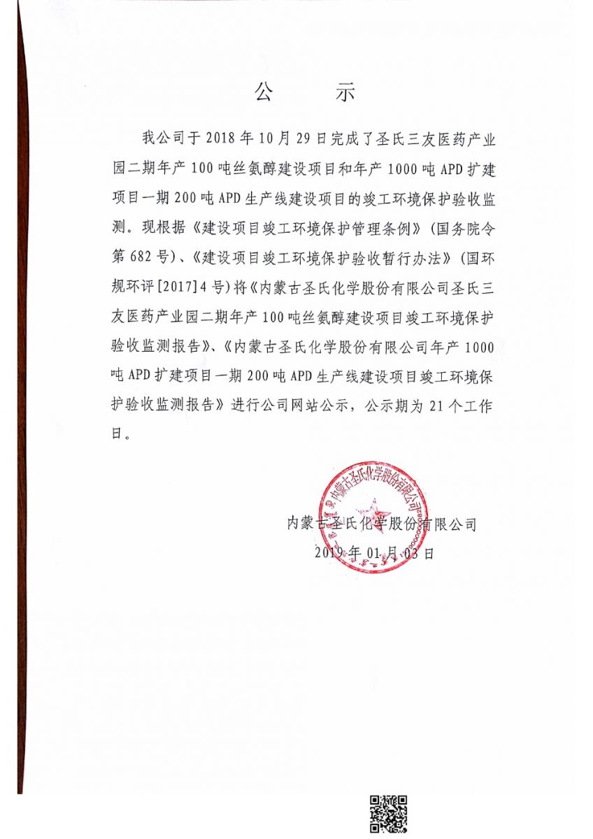 內(nèi)蒙古圣氏化學(xué)股份有限公司公示